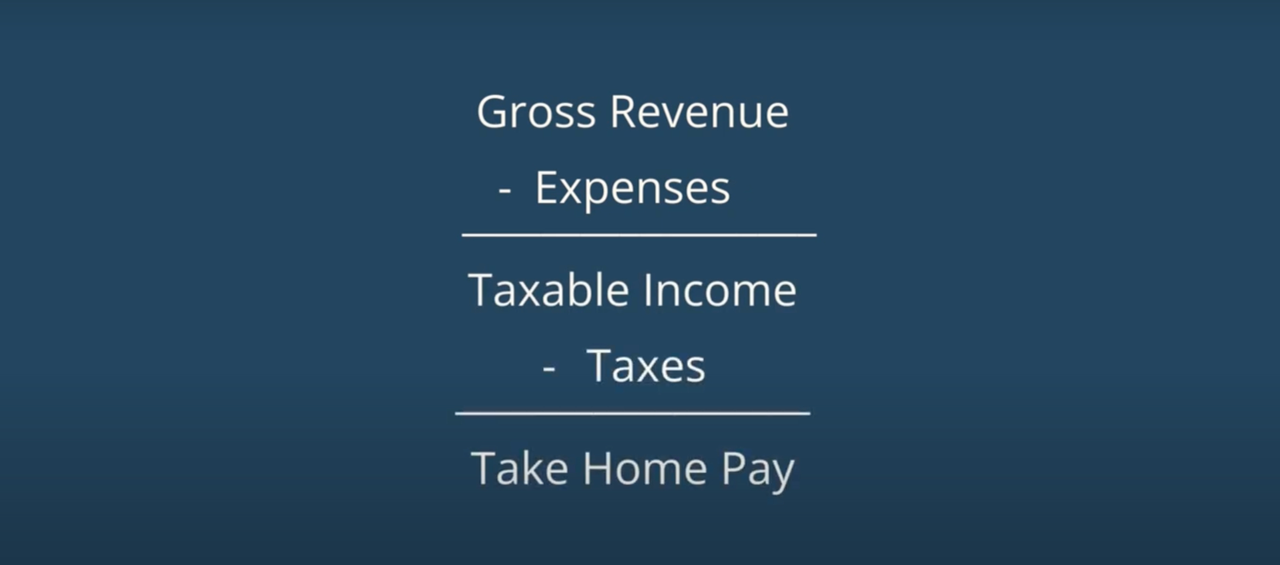 Essentially, here is the formula for your take home pay when you’re self-employed: